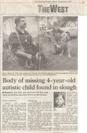 As I've written on my facebook page in the past, I'll remind folks here. In 1997 I ended up testifying against the State of Oregon Sheriff's Association (OSSA) who manages SAR in Oregon after they tried to cover up the deaths of two innocent children. Nathan Madsen and Derrick Engelbretson. Both who died in Klamath co. and we ended up coming in privately on behalf of the family and finding Nathan's remains in the original search area where the sheriff had refused SAR dogs for 9 months and over 2,000 volunteers failed to find his remains less than 2 miles away in the Mt Jefferson Wilderness area. It took my teams less than 16 hours of searching to find his remains. This can be verified by the Oregon State Police report.